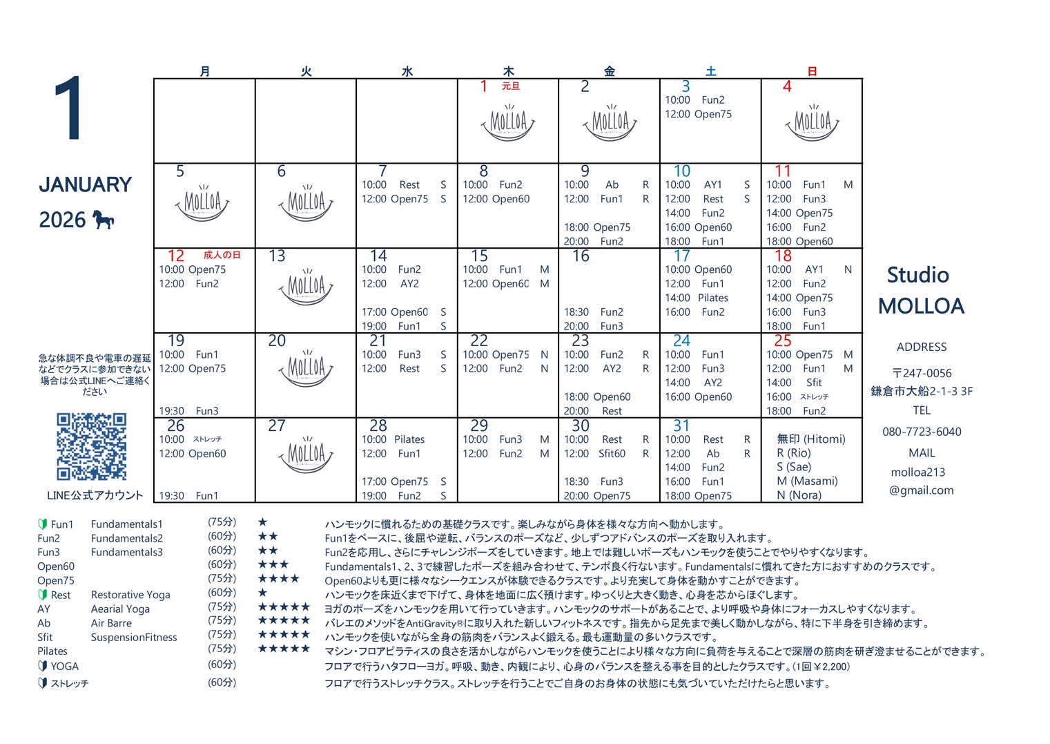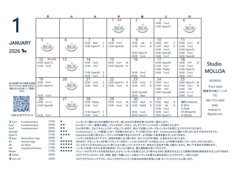 1月スケジュールを更新しました。
